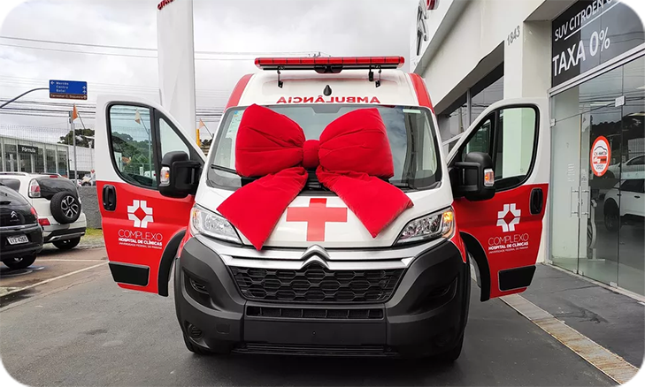 Parceria entre Megamania e Amigos do HC possibilitou que uma nova ambulância com alta tecnologia fosse entregue ao Hospital de Clínicas. — Foto: Assessoria Amigos do HC